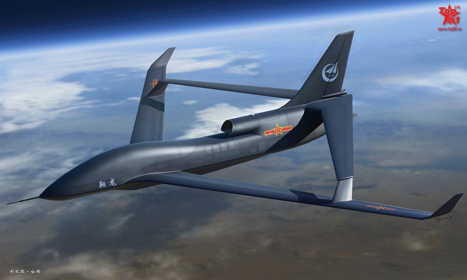 从飞机上方和下方来看,翔龙无人机呈现菱形结构。独特的造型不仅仅为了好看,而是为了增加无人机的抗坠毁能力和高空性能。网络媒体曾经在2016年7月公布了一张JL-9教练机和翔龙无人机的图片,表明贵州航空工业集团正在生产翔龙无人机。