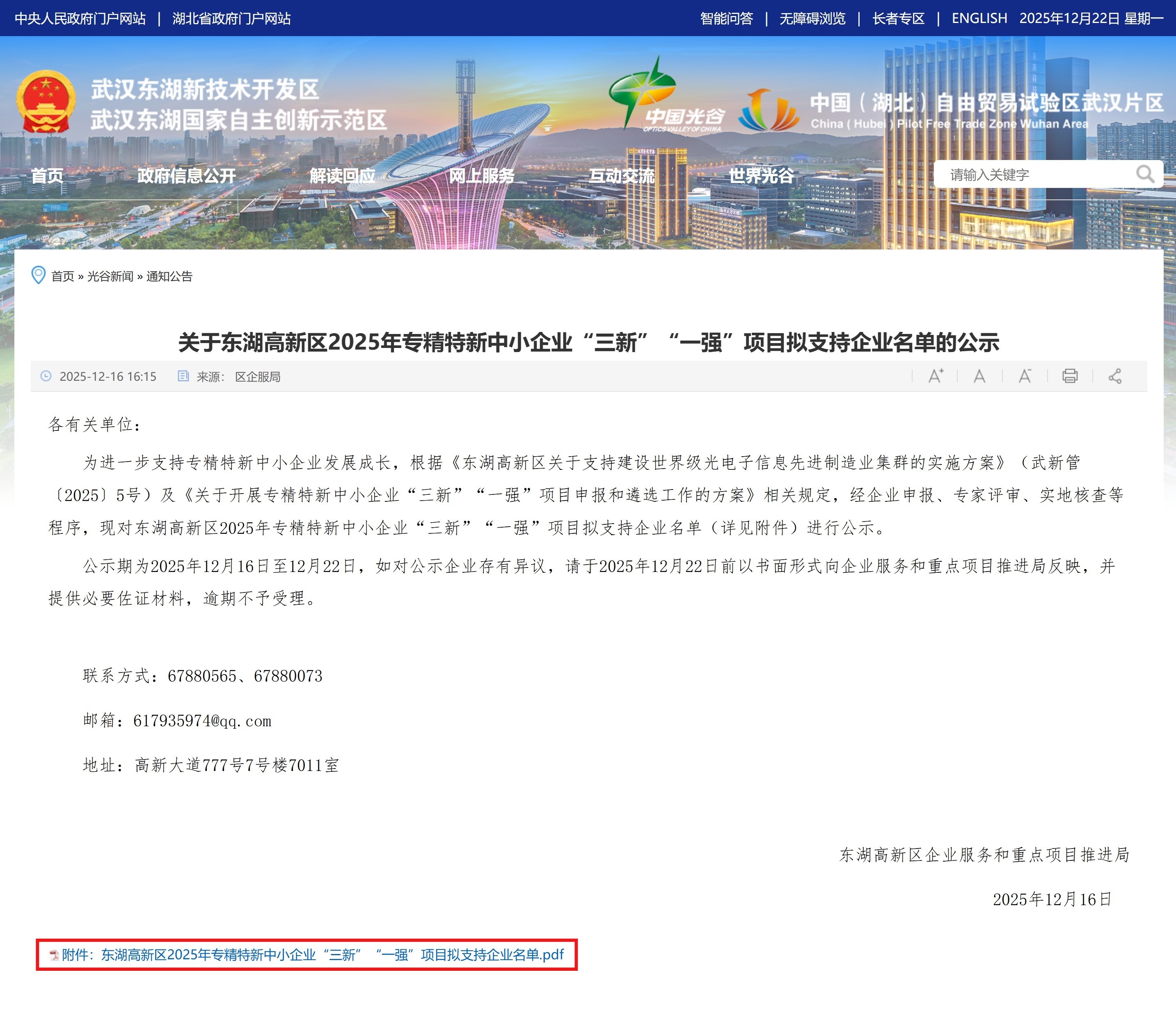 喜报|华中测控荣获东湖高新区2025年专精特新中小企业“三新” “一强”项目认定